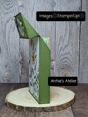 For each of these four little lunch pail or purse style treat holders with magnetic closures, the construction of which I adapted from the original design by Stampin' Up! demonstrator, Angie Pyjas (Stamping With Amore), I used the Sale-A-Bration Dandy Designs Designer Series Paper, and the bunny stamp and co-ordinating die from the Playing In The Rain Bundle (item 160551). The bunny is so happy and I think we all need a little more of that!! Although available together as a Bundle (with the 10% Bundle Savings), the Playing In The Rain stamp set (item 160542) and the Playing In The Rain dies (item 160550) can of course also be purchased separate from the Bundle.