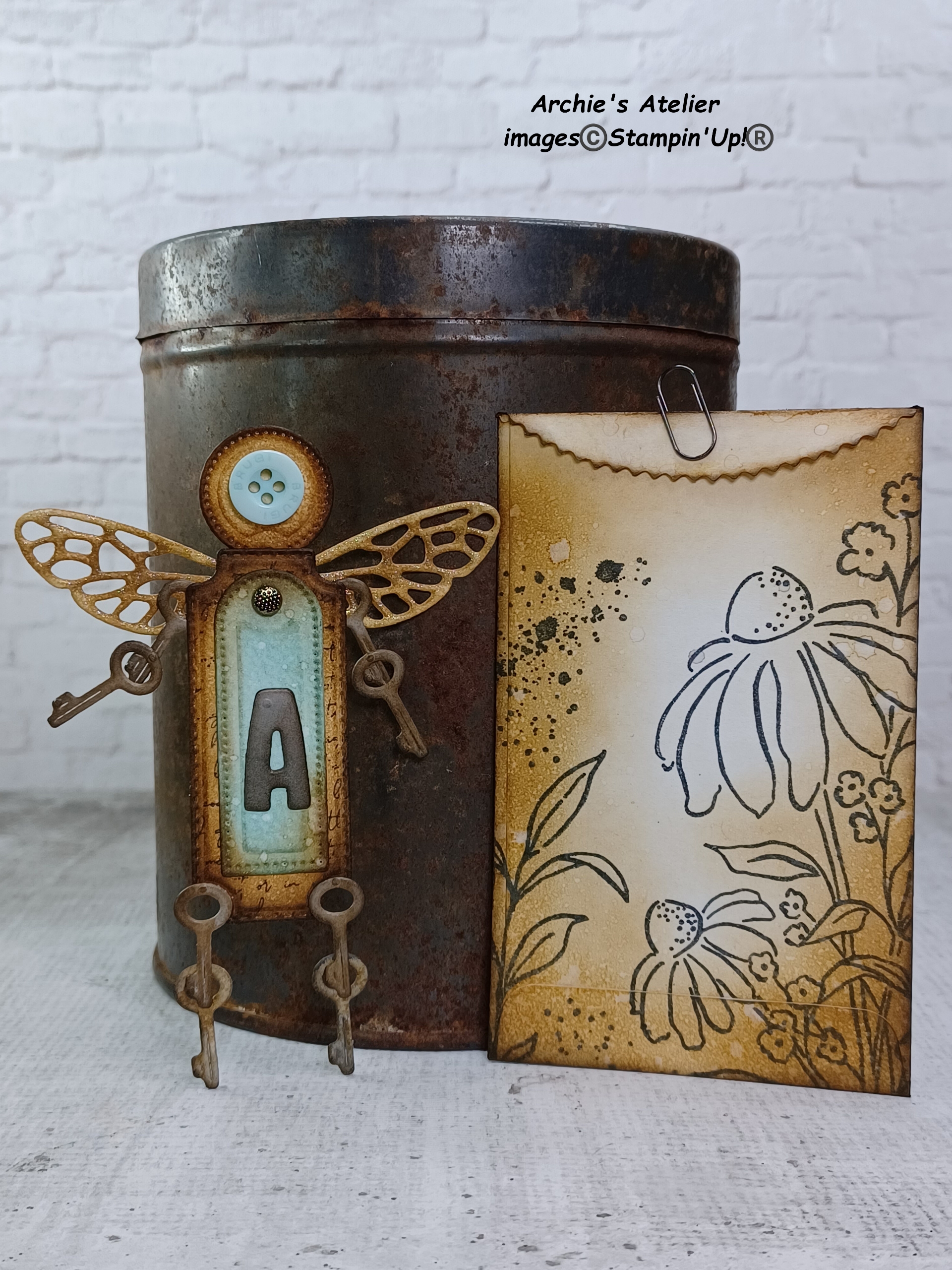 The Queen Bee wings were coloured with Pecan Pie ink, and then painted with my Wink Of Stella Glitter Brush (item 141897) for a little shimmer.